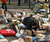 10.由系統(tǒng)生成每票貨物的標(biāo)簽,并粘貼到對應(yīng)的貨物外箱上,然后分區(qū)域擺放。